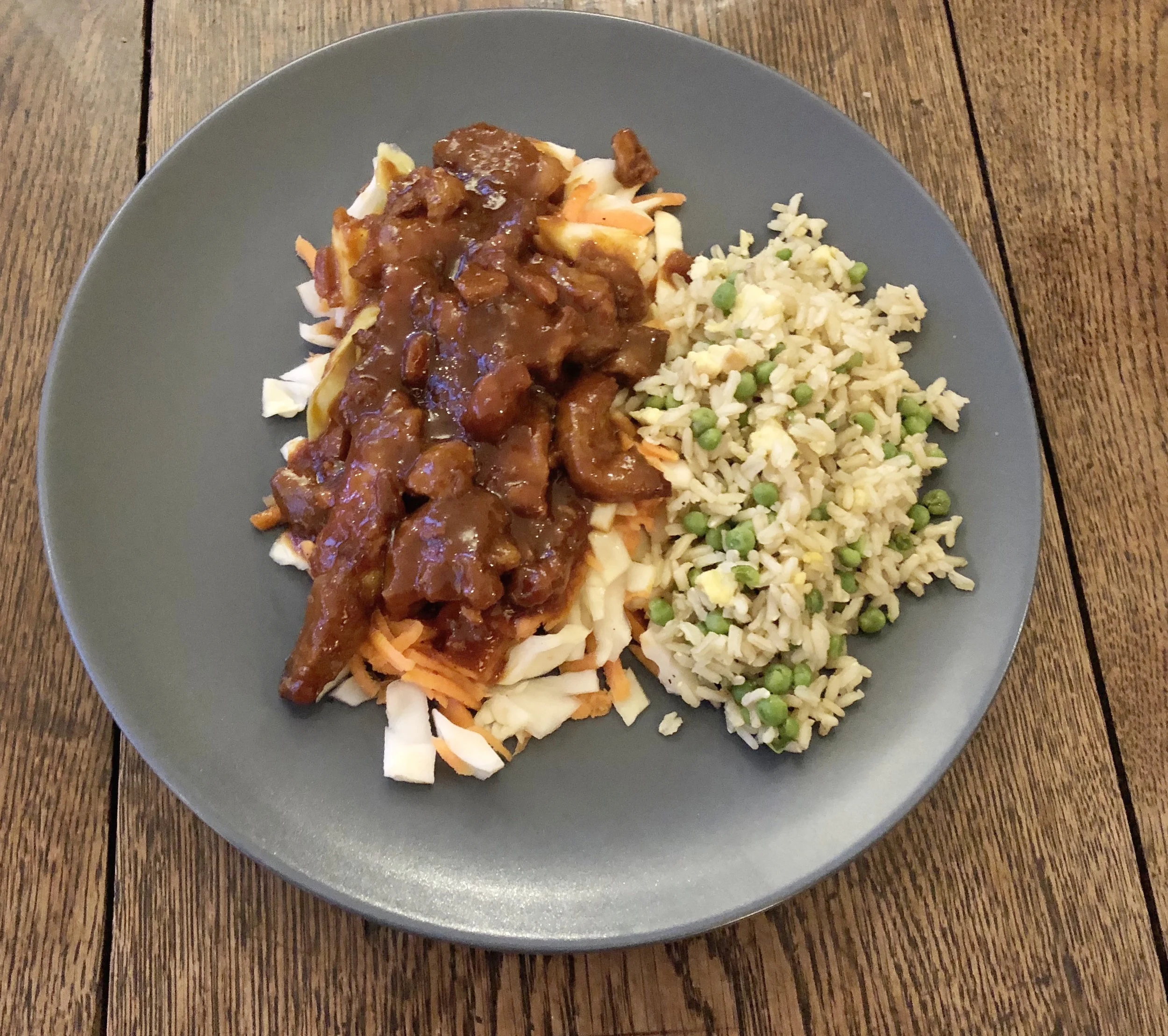 Babi Pangang: gemarineerde groenten met daarop krokant gebakken stukjes varkensvlees en een zoetzure saus. Wie vindt dit ook zijn/haar lievelingsgerecht bij de Chinees?