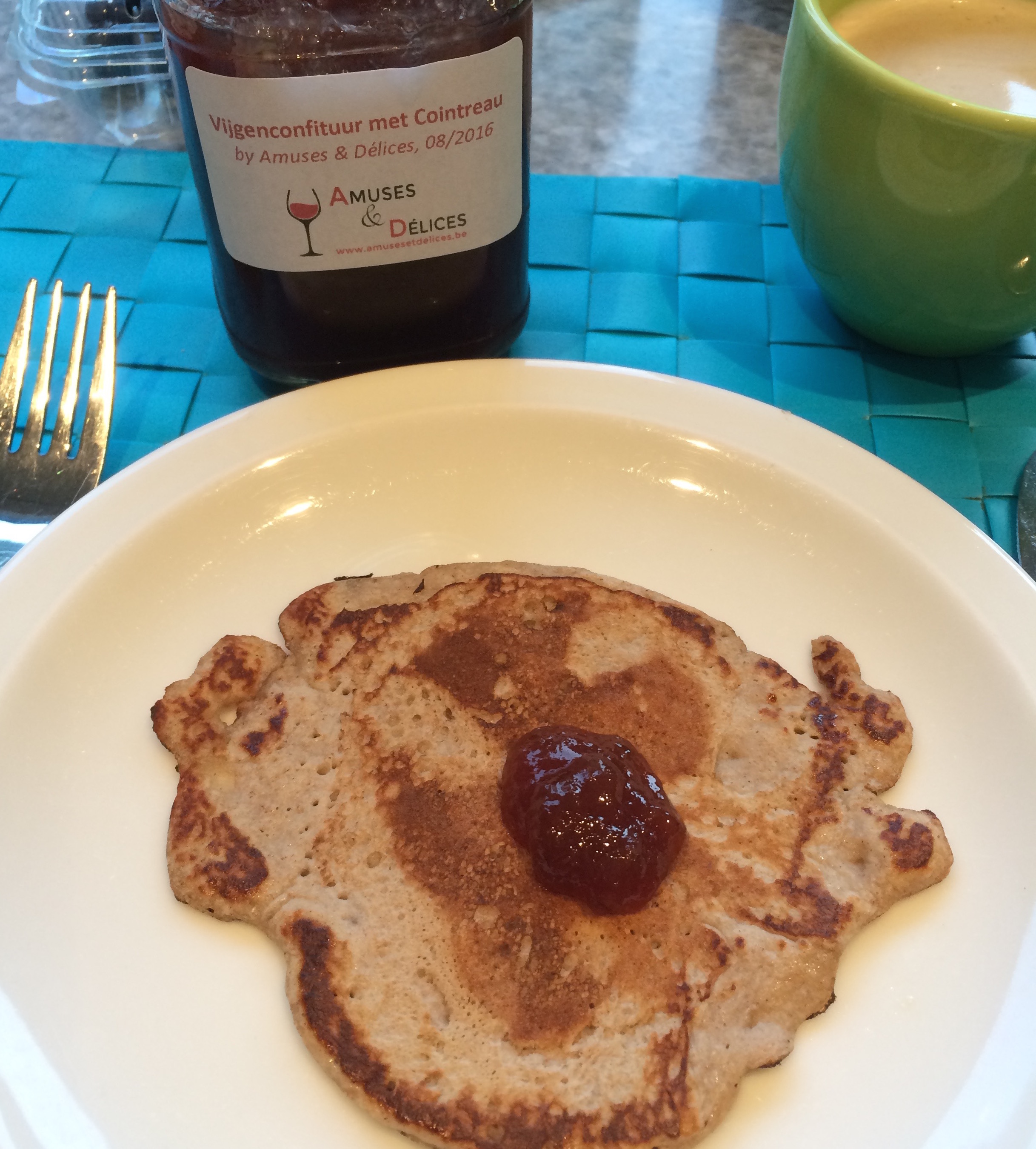 Serveer de pannenkoekjes met verse vijgenconfituur of vers fruit.
