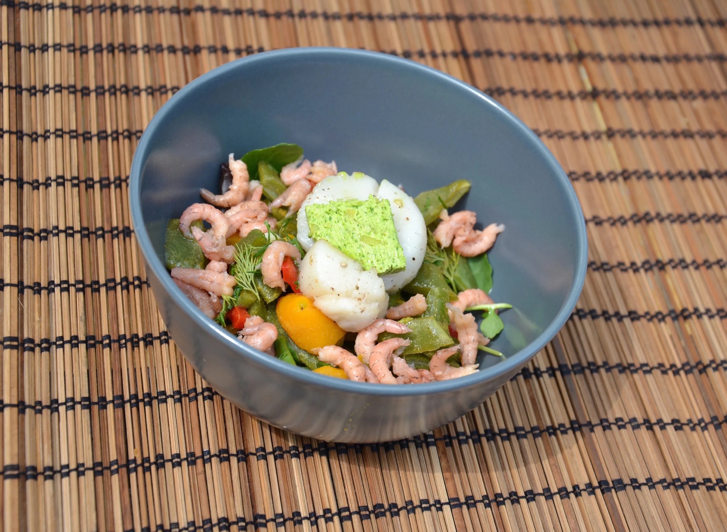 - Wok de snijbonen 2 min. en voeg daarna de paprika toe. Werk af met oestersaus. Laat afkoelen.