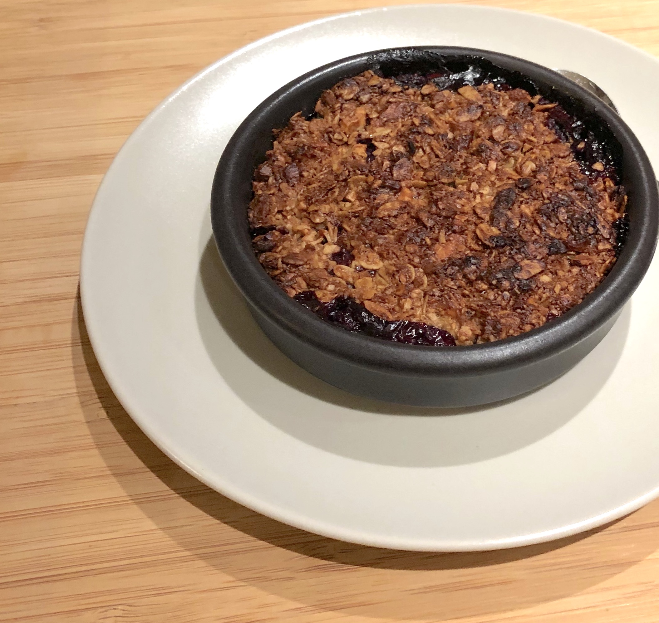 Neem schaaltjes geschikt voor de oven en verdeel hierover het appel-bessenmengsel. Bedek het fruit vervolgens met de crumble.