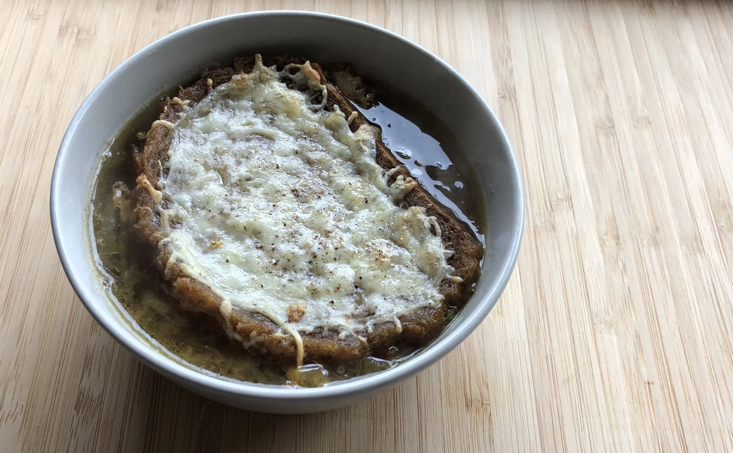 Franse ajuinsoep met kaasbroodjes