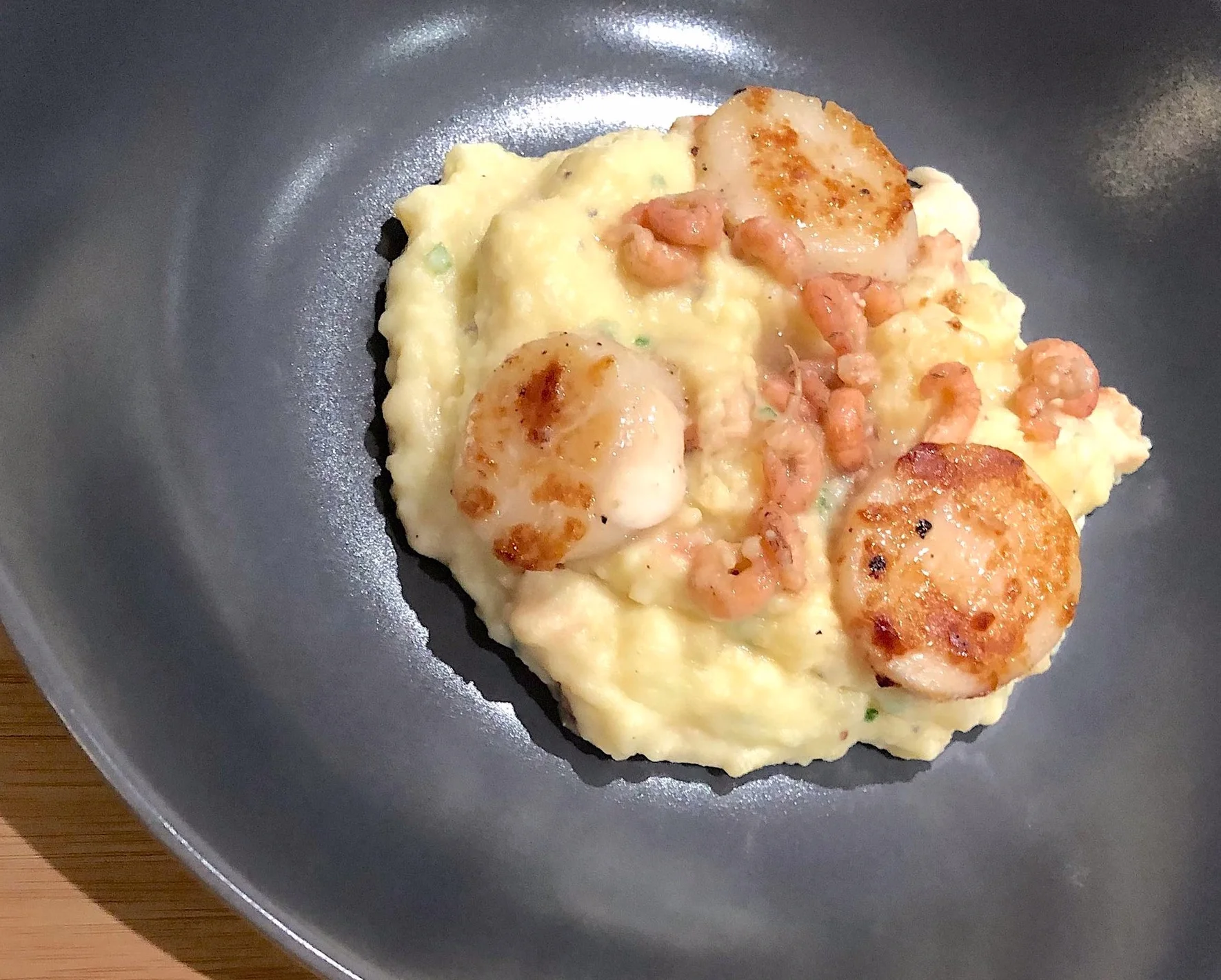 Puree délices met garnalen en Sint-Jakobsvruchten