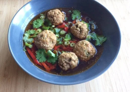 Overheerlijk soepje van gehaktballetjes met koriander en gember